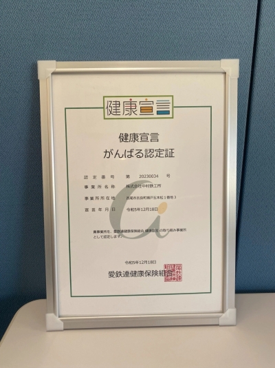 2023年12月より愛鉄連健康保険組合の 「健康宣言 がんばる認定証」を取得いたしました。